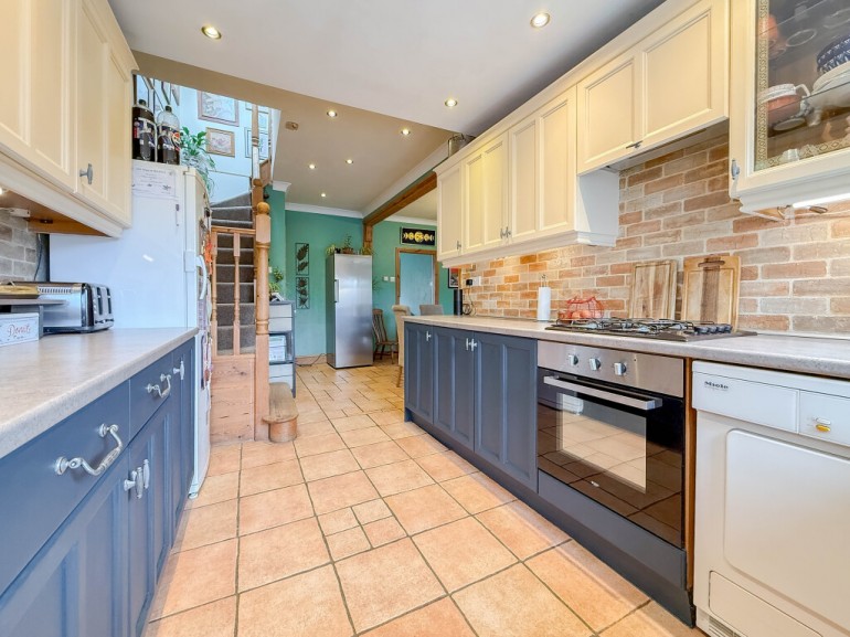 Accommodation comprises: An entrance hallway that features storage space and leads to the lounge, garage conversion and stairs to the first floor. The conversion offers a flexible space and is currently used as a second reception room. The spacious lounge features an attractive wood?panelled feature wall, plus access to the kitchen diner and understairs storage. The kitchen diner is the heart of the home?, bright and inviting with high gloss base and wall units, integrated appliances including cookware, fridge freezer and dishwasher, plus French doors opening onto a decked seating area. A handy utility room and WC are tucked away just off the kitchen. Upstairs, all three bedrooms are doubles, with built?in storage in bedrooms one and two. A modern family bathroom and an en-suite shower room complete the first floor layout.