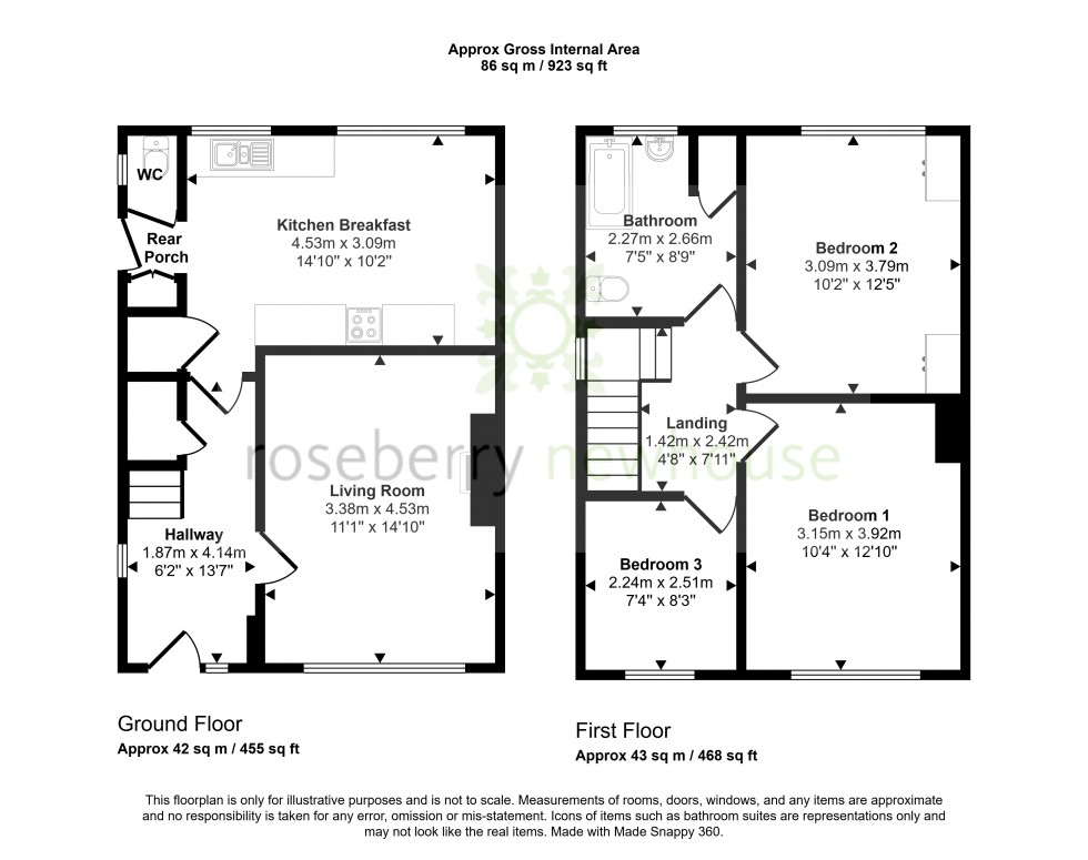 To the first floor, there are three bedrooms—two doubles and a single—alongside a contemporary house bathroom with modern fittings and attractive tiling.